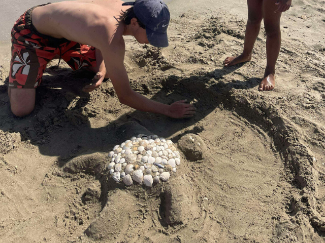 Ramasser des coquillages pour pouvoir réaliser mon land'art, il était trop beau !